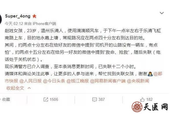据乐清警方称,警方在接到被谋杀女孩赵某的家人的报告后,于次日凌晨在一家酒店逮捕了钟某。滴滴司机钟某承认强奸赵某并杀害赵某。目前,受害者的尸体已被发现,案件正在进一步调查中。