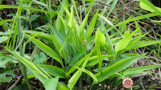淡竹叶,又名竹叶麦冬、山鸡米,为禾本科植物淡竹叶的干燥全草的地上部分。淡竹叶高数寸,茎细叶绿,非常像竹米落地所生的细竹的茎叶。多年生草本,它的根一颗有几十条须,须上结有子,和麦门冬一样,仅是更坚硬而已。生于山坡林下及沟边阴湿处。夏季末抽花穗前采割,晒干备用。