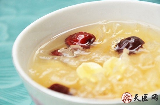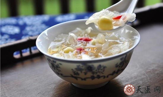 银耳富有天然特性胶质,加上它的滋阴作用,长期服用可以润肤,并有祛除脸部黄褐斑、雀斑的功效。银耳是和种含膳食纤维的减肥食品,它的膳食纤维可助胃肠蠕动,减少脂肪吸收。