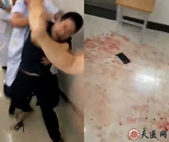 但就在把患者抬上救护车后,邱医生与患者的儿子沟通,要其作为家属一同前去,这个看着20多岁的患者儿子突然冲到邱医生面前,对着他脑袋就是一拳,打掉了邱医生的近视眼镜,接着紧紧勒住邱医生的脖子,一边用膝盖顶,一边用手捶,后来紧紧咬住他左耳不放。