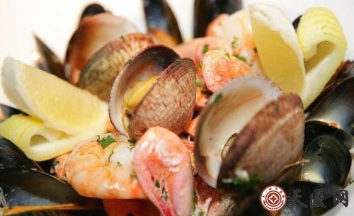 海鲜中的鱼、虾、海藻类,含有丰富的蛋白质和钙,如果与柿子、葡萄、石榴、山楂、未熟的香蕉等含有高量鞣酸的水果同食,不仅会降低其营养价值,也易使钙质与鞣酸结合成一种鞣酸钙,会给人体造成不适。另外,虾类不要与维生素C同食,同样对人体无益。
