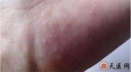 湿气过重导致手上出现一些小水泡并且轻微瘙痒。体内湿热上升时就会出现类似的小水泡,这类水泡是半透明或者不透明的,一般轻微瘙痒。