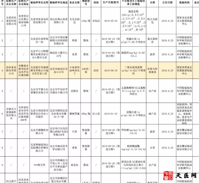 此外,北京市市场监督管理局还通报了另外9批次食品抽检不合格。