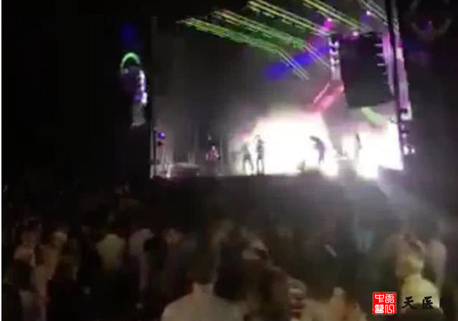 现场视频显示,舞台上至少有九名表演者,伴随着响亮的音乐翩翩起舞。突然,舞台前部的两个烟火装置冒出火花,右边的那个方向出错直接射向这名女子。