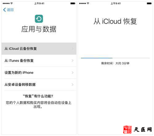 重启手机后,进入【应用与数据】界面,选择【从iCloud云备份恢复】,登录Apple ID,选择需要恢复的iCloud云备份后开始恢复。这样就成功恢复了。