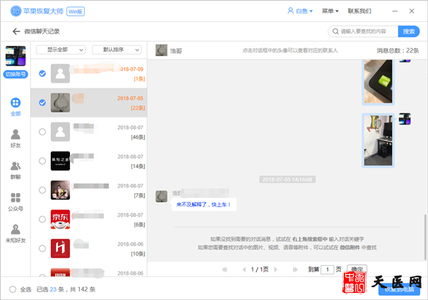 怎么恢复微信删除的聊天记录?每天我们会用微信与好友聊聊天,逛逛朋友圈点点赞,不知不觉,已经使用微信很久了。但微信其实很容易丢失聊天记录,小伙伴们知道误删了**要如何恢复吗?不了解的小伙伴们,那下面天医网小编就分享一下恢复的方法,希望可以帮助小伙伴。
