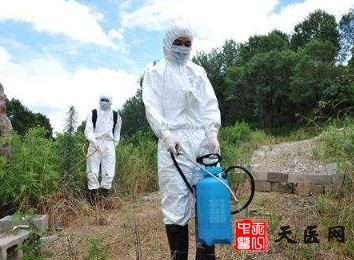 (3)室内外环境:在排除住宅周围积水,清除垃圾污物及蚊蝇孳生地的基础上,用500-1000毫克/升有效氯的含氯消毒剂溶液喷洒。